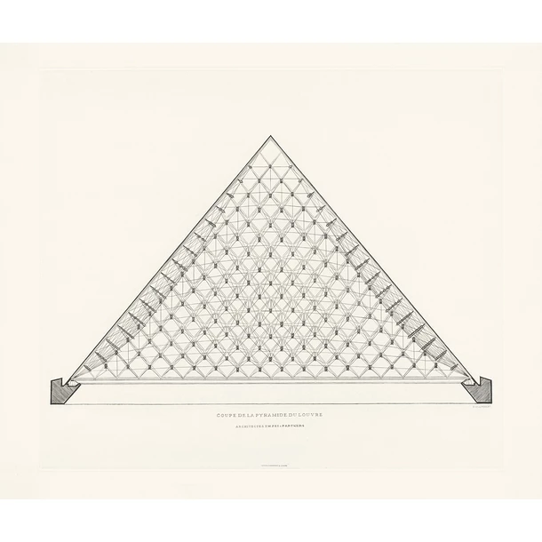 Cette estampe représente la célèbre pyramide de l’architecte Ieoh Ming Pei construite dans la cour du musée du Louvre en 1989.