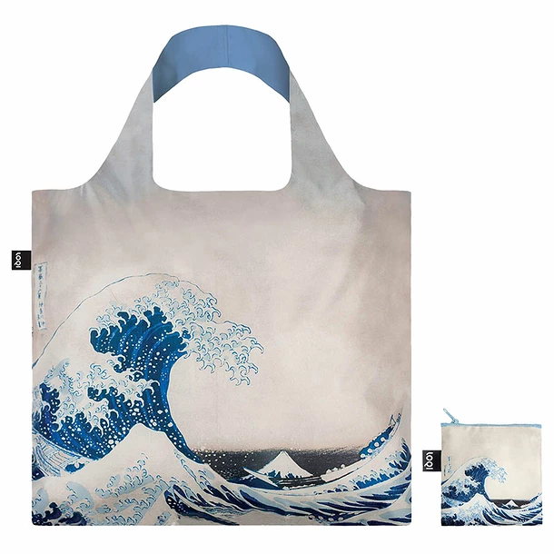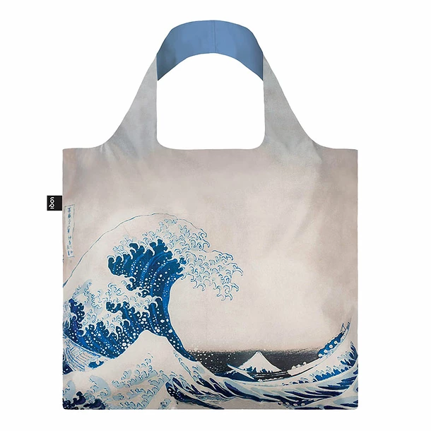 Le sac shopping Katsushika Hokusai de LOQI est imprimé sur les 2 faces, est fabriqué en taffetas de polyester, certifié STANDARD 100 OEKO- TEX, résistant à l’eau et recyclable.