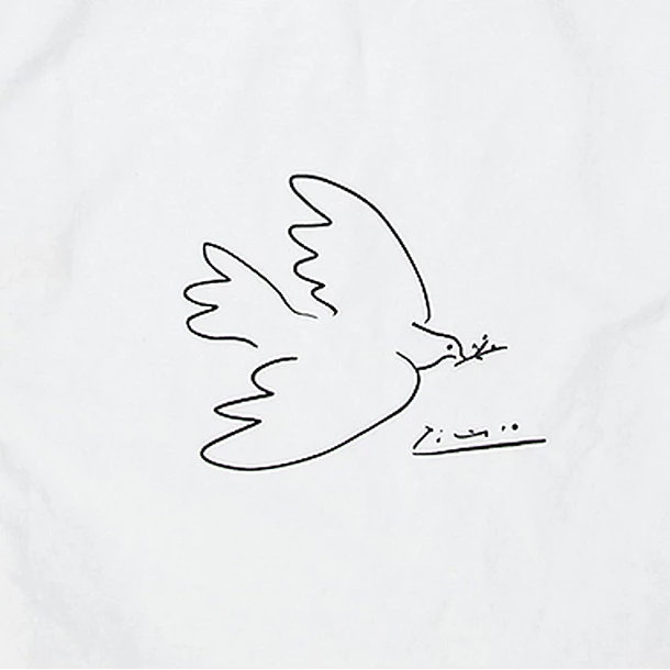 Le motif de ce sac est inspiré du célèbre dessin de Picasso La Colombe de la Paix réalisé en 1949.