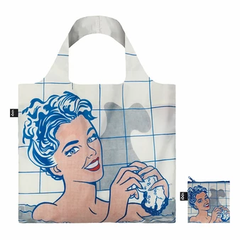 Ce sac pliable fourre-tout conçu et produit exclusivement par Loqi pour le Museo Nacional Thyssen-Bornemisza, reproduit un détail de l’œuvre de l’artiste américain Roy Lichtenstein (1923 – 1997), Femme dans le bain (1963).