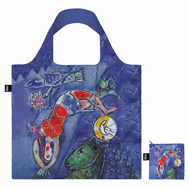 Pour se faire tout petit dans votre sac à main, il se roule fermé par une lanière pressionnée, ou se replie afin de se ranger dans sa pochette zippée assortie (11 x 11,5 cm). Le sac shopping Marc Chagall LOQI, imprimé sur les 2 faces, est fabriqué en taffetas 100% recyclé et certifié GREEN CIRCLE®, STANDARD 100 par OEKO-TEX®, sans substances nocives.