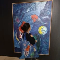 Les artistes de cirque, avec leurs costumes farfelus et leurs maquillages criards, étaient des personnages idéaux pour peupler les compositions oniriques de Chagall. « Pour moi, un cirque est un spectacle magique qui apparaît et disparaît comme un monde ». Marc Chagall nous transporte loin vers des horizons enchanteurs avec ce fourre-tout recyclé.