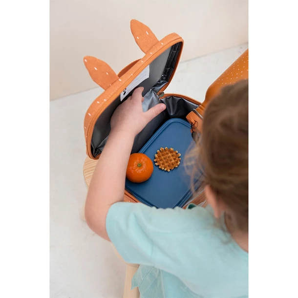 N’oubliez pas votre déjeuner favori dans ce sac repas astucieux. Ce sac isotherme est conçu pour que le repas reste bien chaud ou froid. Ce sac bénéficie également d’un revêtement de protection imperméable. Les oreilles flappy apportent un aspect ludique tandis que la poignée offre la possibilité de porter le sac à repas et le rend compact. Le sac est doté d’une grande fermeture pour qu’il soit facile à ouvrir et à fermer. Il comporte également un porte-nom à l’intérieur, pour que vous puissiez toujours retrouver votre compagnon de repas, ainsi qu’une pochette à part pour un biscuit qui n’a pas besoin de rester au chaud ou au froid. La gourde et la lunch box Trixie entrent parfaitement dans ce sac repas.