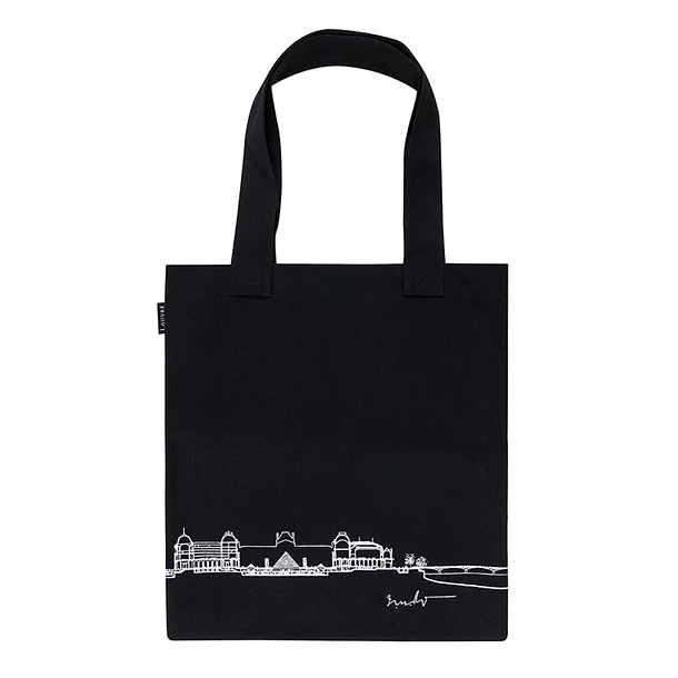 Le motif de ce sac reprend un plan en coupe longitudinale du projet de Pyramide de l’architecte Ieoh Ming Pei pour le Louvre.