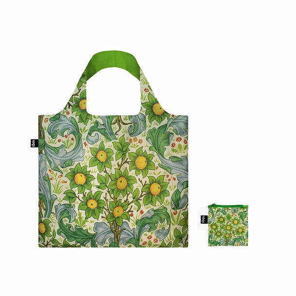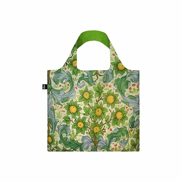 Bleu tendre. Feuilles d’acanthe vertes. De petits orangers. Cela ne donne qu’une envie, celle de se plonger dans la palette de couleurs exquises du sac fourre-tout recyclé Orchard / Dearle by William Morris.