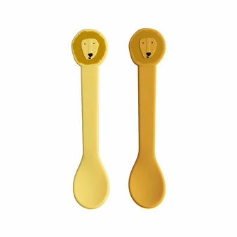 Deux cuillères colorées avec un visage sympathique pour profiter des repas ! Cette cuillère est parfaite pour donner des aliments solides à votre enfant. Les cuillères sont également très utiles pour les enfants qui apprennent à manger seuls. L’intérieur de la cuillère contient une partie en acier inoxydable intégrée qui la garde solide et droite. Ceci fait que cet article est une exception et il ne peut pas être mis au micro-ondes. Le silicone est un excellent matériau à utiliser en cuisine. Il ne se casse pas et il peut être utilisé en toute sécurité au micro-ondes, au lave-vaisselle, au congélateur et au four. Même en cas d’utilisation intensive, la vaisselle reste en bon état et elle peut facilement être transmise aux petits frères, sœurs ou amis. Le silicone 100 % alimentaire est conforme à toutes les normes de sécurité européennes.