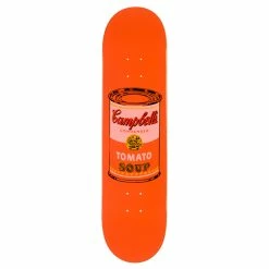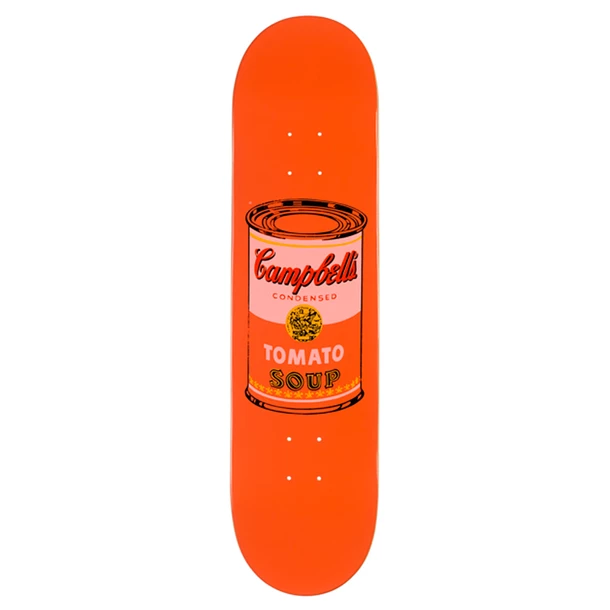 Ce skate est réalisé en bois d’érable. La célèbre boîte de soupe Campbell’s y est représentée, en pêche, dans sa version revisitée par l’artiste Andy Warhol.