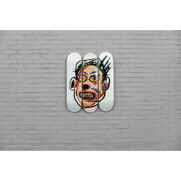 Avant que Jean-Michel Basquiat ne devienne l’un des artistes les plus importants du XXe siècle, son œuvre était déjà légendaire dans les rues de New York. Ses symboles poétiques et poignants ont établi un vocabulaire visuel qui continue d’inspirer de nouvelles générations d’artistes dans le monde entier. Il va sans dire que nous sommes très heureux de produire Untitled (Face), 1982 sur des planches à roulettes dans le cadre de notre nouvelle collection mettant en vedette l’art de Jean-Michel Basquiat.