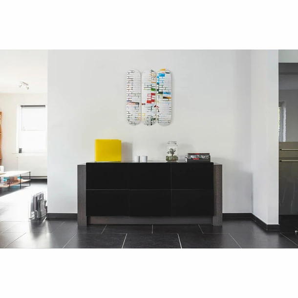 En objet de décoration design ou simplement à utiliser avec des roues, les skates Kelley Walker « White Bricks » trouveront leur place.