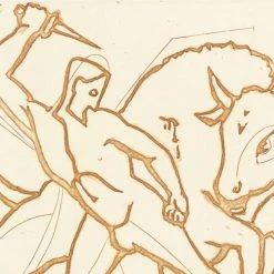 Estampe de Thésée et le Minotaure d’après l’oeuvre de Roderick Mead (1900-1971).