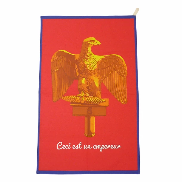 Ce torchon en coton édité à l’occasion de l’exposition « Napoléon » commémorant le bicentenaire de la mort de Napoléon, Grande Halle de la Villette du 14 avril 2021 au 19 septembre 2021, est illustré de l’aigle, qui est certainement le symbole napoléonien le plus connu, avec la phrase-culte de René Magritte : « Ceci n’est pas… ».