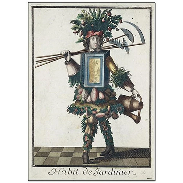 Ce torchon reprend l’estampe en couleur du XVIIème siècle « Habit de Jardinier », conservée au Musée Carnavalet (Paris).