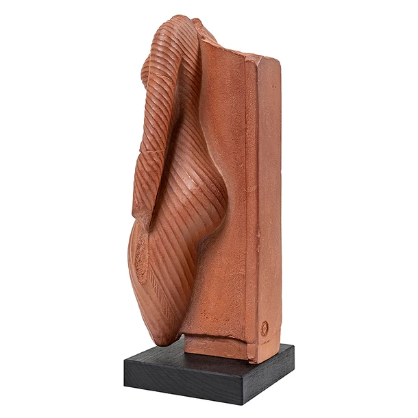 Reproduction patinée à la main sur un socle en bois noir. Moule réalisé à partir d’une empreinte de l’œuvre originale exposée au Louvre.