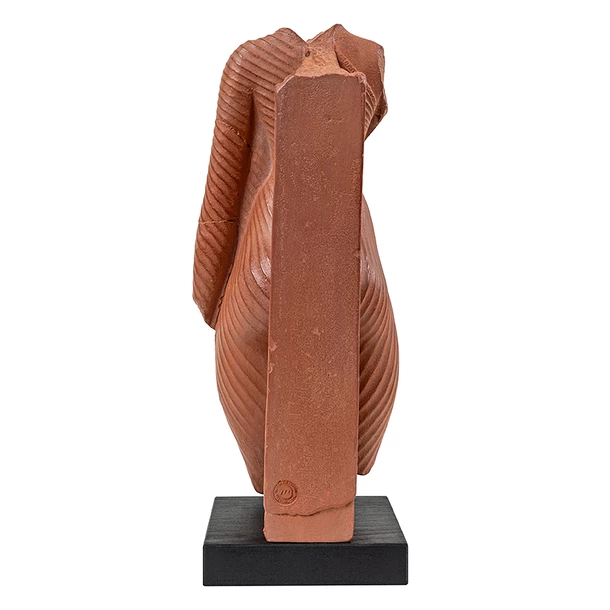 Identifiée à Néfertiti ou à une princesse, ce torse présente un gonflement exagéré du bassin et des cuisses, caractéristique de l’iconographie amarnienne. Malgré les manques, il semblerait que le personnage féminin soit dans la position de la marche, avec le bras droit levé en signe de respect; attitude que l’on retrouve dans d’autres sculptures de Néfertiti notamment.