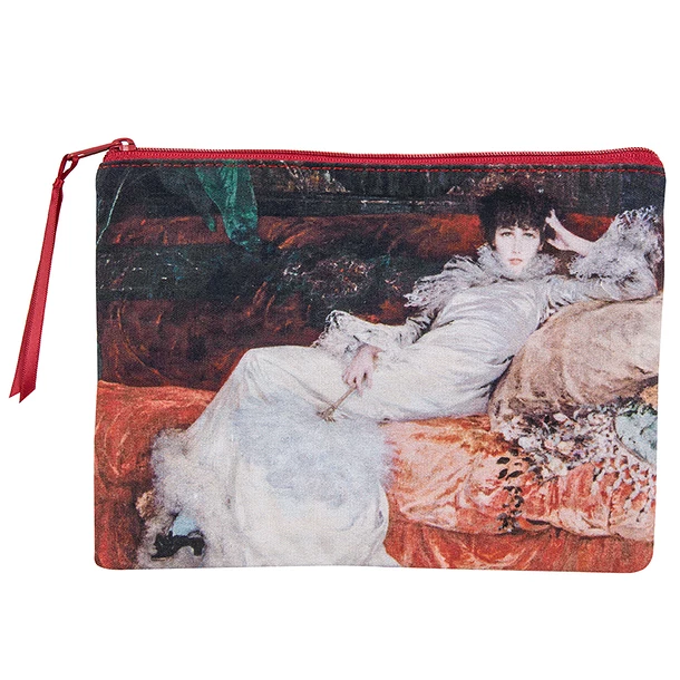 Ce grand portrait en robe de satin blanc, d’une nonchalance très étudiée, fut l’un des préférés de Sarah Bernhardt qui le conserva toute sa vie. Il annonce dès 1876 l’esthétique de l’Art nouveau avec ses lignes sinueuses, ses tons irisés et le magnétisme d’une présence féminine à la fois séductrice et inquiétante. Au décès de sa mère, Maurice Bernhardt en fit don au Petit Palais où il continue de servir le mythe de cette grande actrice.