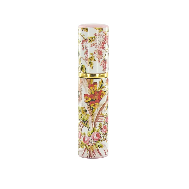 Vaporisateur de sac appartenant à la gamme « Dames de la Cour ». Cette gamme a été créée pour le Château de Versailles. Elle reprend les portraits de grandes dames sur un fond fleuri, rappelant les tapisseries du château.