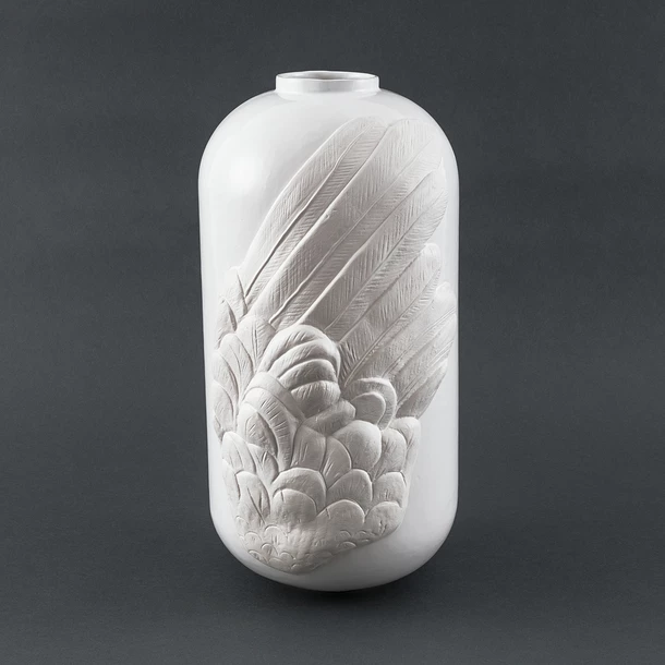 Au-delà du symbole de l’aile, le voyage, la liberté et la légèreté ont largement inspirés cette ligne, tant dans le choix de ces matériaux que dans la pureté du traitement graphique. Ces objets vous suivront partout : carré et étole, accessoires de voyage, broche brodée, pendentif en acier, bague et pendentif en porcelaine, vases, coupes, boîtes et vide-poche en faïence.