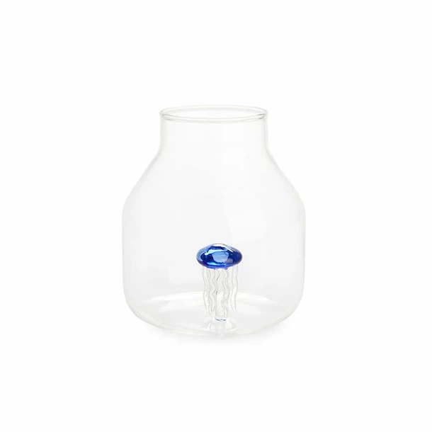 La jolie méduse bleue en verre semble nager à l’intérieur du vase.