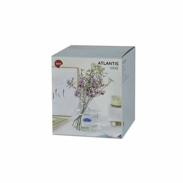 Vase pour fleurs de forme conique avec une méduse en verre bleu en son centre.