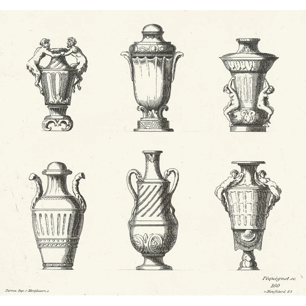 Reproduction par Auguste Pèquègnot d’une série de vases réalisée par l’architecte Jean-Baptiste Androuet de Cerceau.