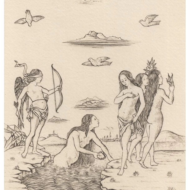 Estampe Vénus, Carte 43 par Cécile Reims née en 1927, d’après les cartes de tarot de Mantegna (1431-1506).
