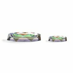 Faites entrer un arc-en-ciel dans votre maison ! La série REGENBOGEN est fabriquée à la main à partir de cristal, puis traitée avec un film chromatique spécial sur la face inférieure qui exagère et déforme la capacité naturelle du cristal à briser la lumière en sept couleurs d’arc-en-ciel.