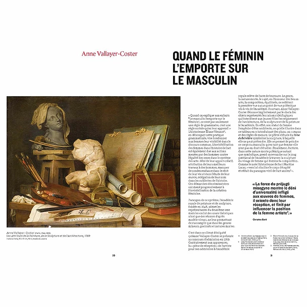 L’histoire de l’art des femmes est pourtant aussi riche en rebondissements que celle des hommes. Ce sont des artistes ingénieuses, aventureuses, libertaires, des Wonder Women. Raconter leur histoire, c’est raconter la lutte contre les stéréotypes du genre mais c’est aussi inviter le plus grand nombre à s’interroger sur la construction des normes culturelles qui ont entretenu les discriminations de sexe, de race et de classe. L’art des femmes dérange parce qu’il s’oppose aux préjugés de genre, à la domination sociale, à l’injustice, à l’exclusion due au simple fait d’être différent.
