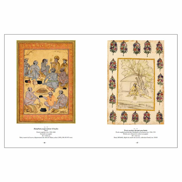études picturales de postures yogiques, telles qu’elles furent codifiées au XVe siècle dans le texte sanskrit Hatha Yoga ; le second est une étonnante peinture sur coton de près de 2 mètres de longueur, issue du cabinet de curiosités de la bibliothèque Sainte-Geneviève. Elle figure 29 ascètes et yogis se livrant à différents exercices de yoga. Ces deux témoignages artistiques comptent parmi les plus anciennes représentations picturales de postures yogiques connues à ce jour.